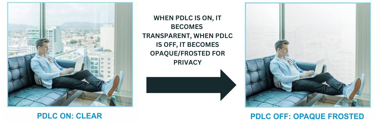 Initially developed for use in sensitive environments such as government buildings, embassies, and military installations, PDLC glass films were designed to provide enhanced privacy and security. This technology, when applied to glass, allows the material to transition between two distinct states—opaque (frosted) and transparent—at the touch of a button. The ability to instantly alter the glass’s appearance provided an effective way to control visibility, ensuring privacy in high-risk environments.